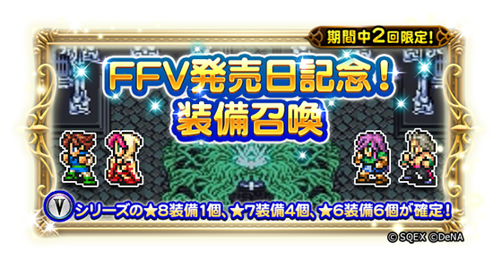 ▼12月6日(土)より、「FFV発売日記念!装備召喚」が開催予定です。