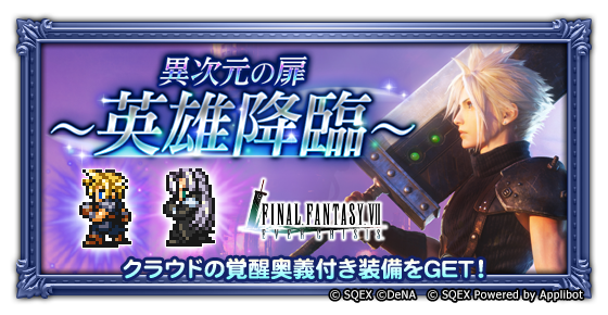 「異次元の扉~英雄降臨~」の復刻開催にあわせて、『FINAL FANTASY VII EVER CRISISコラボ記念!装備召喚』も復刻開催を予定しております。