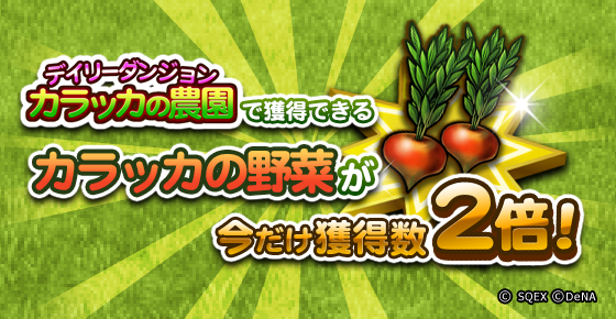 カラッカの農園で獲得できる「カラッカの野菜」の獲得量が2倍に増加します。