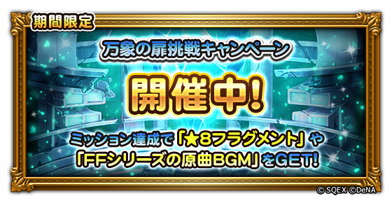 キャンペーン期間中に開催されるミッションをクリアすることで、各種「★8フラグメント」やFFシリーズ原曲BGMを獲得できます。