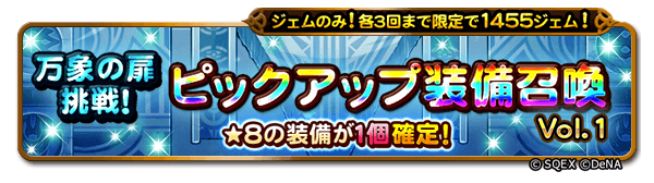 「万象の扉挑戦!ピックアップ装備召喚Vol.1」は、ジェムでのみ実行可能な11連レア装備召喚です。