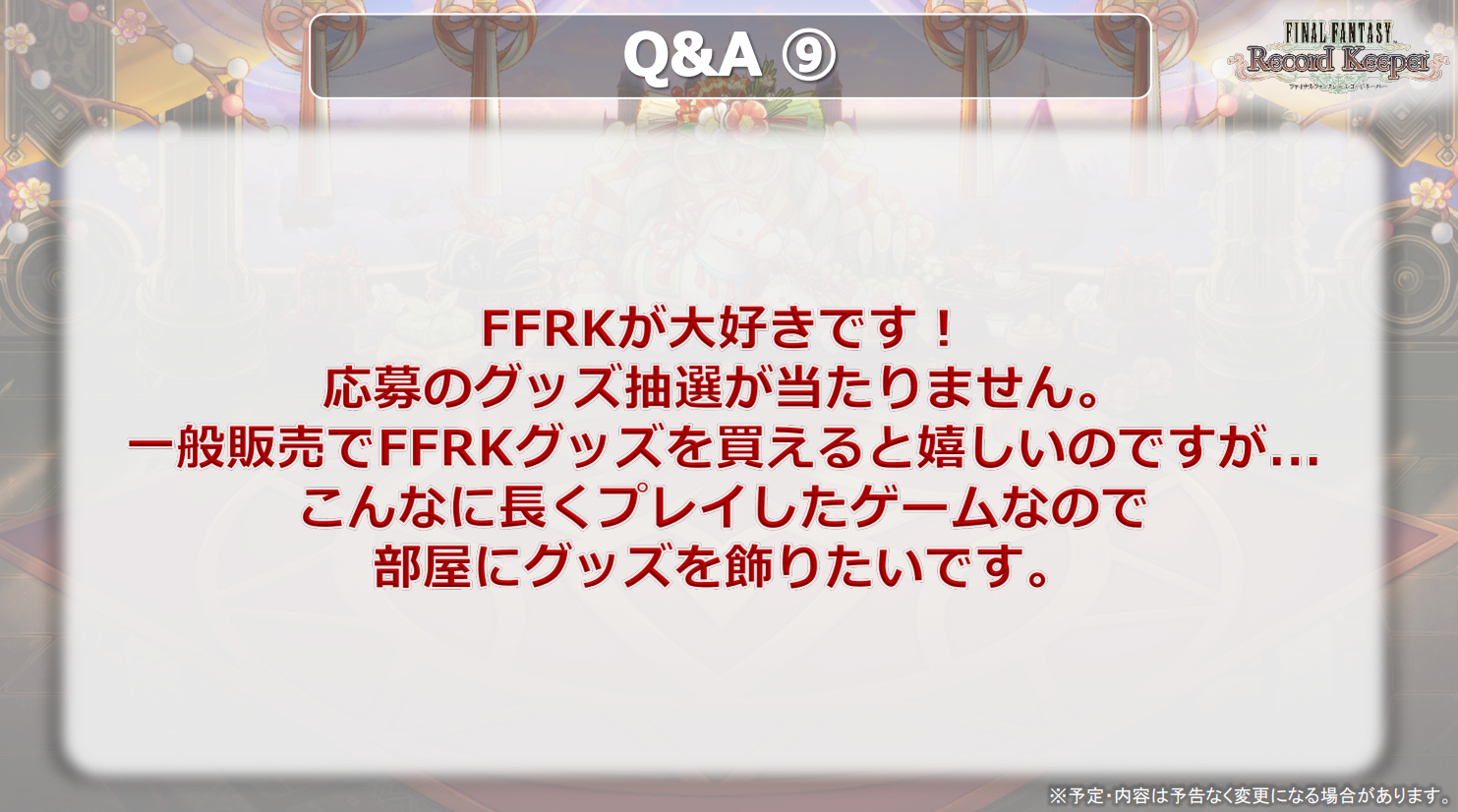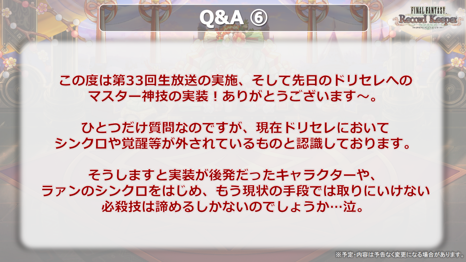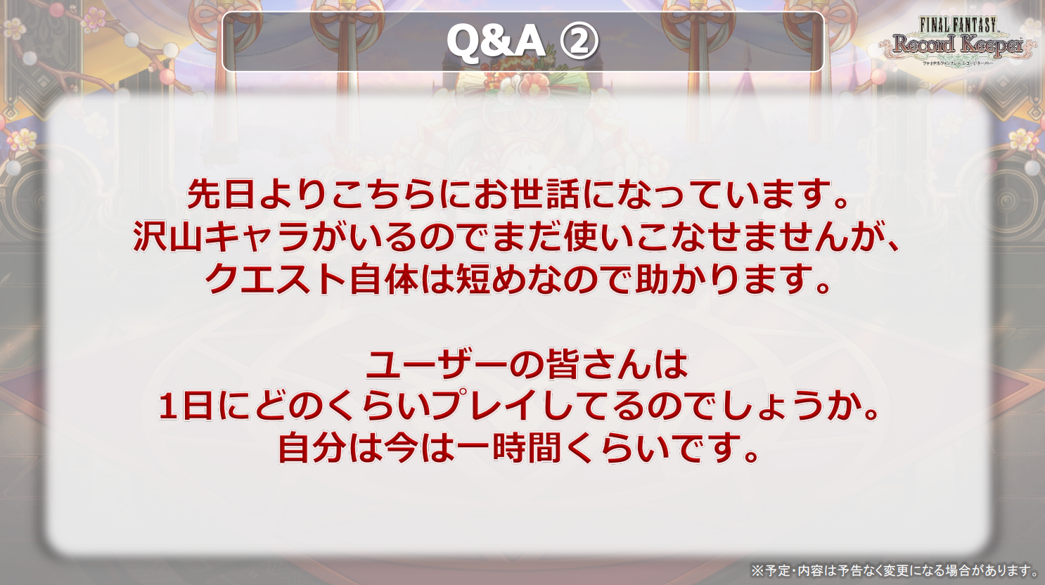 今後とも「FINAL FANTASY Record Keeper」をよろしくお願いいたします。