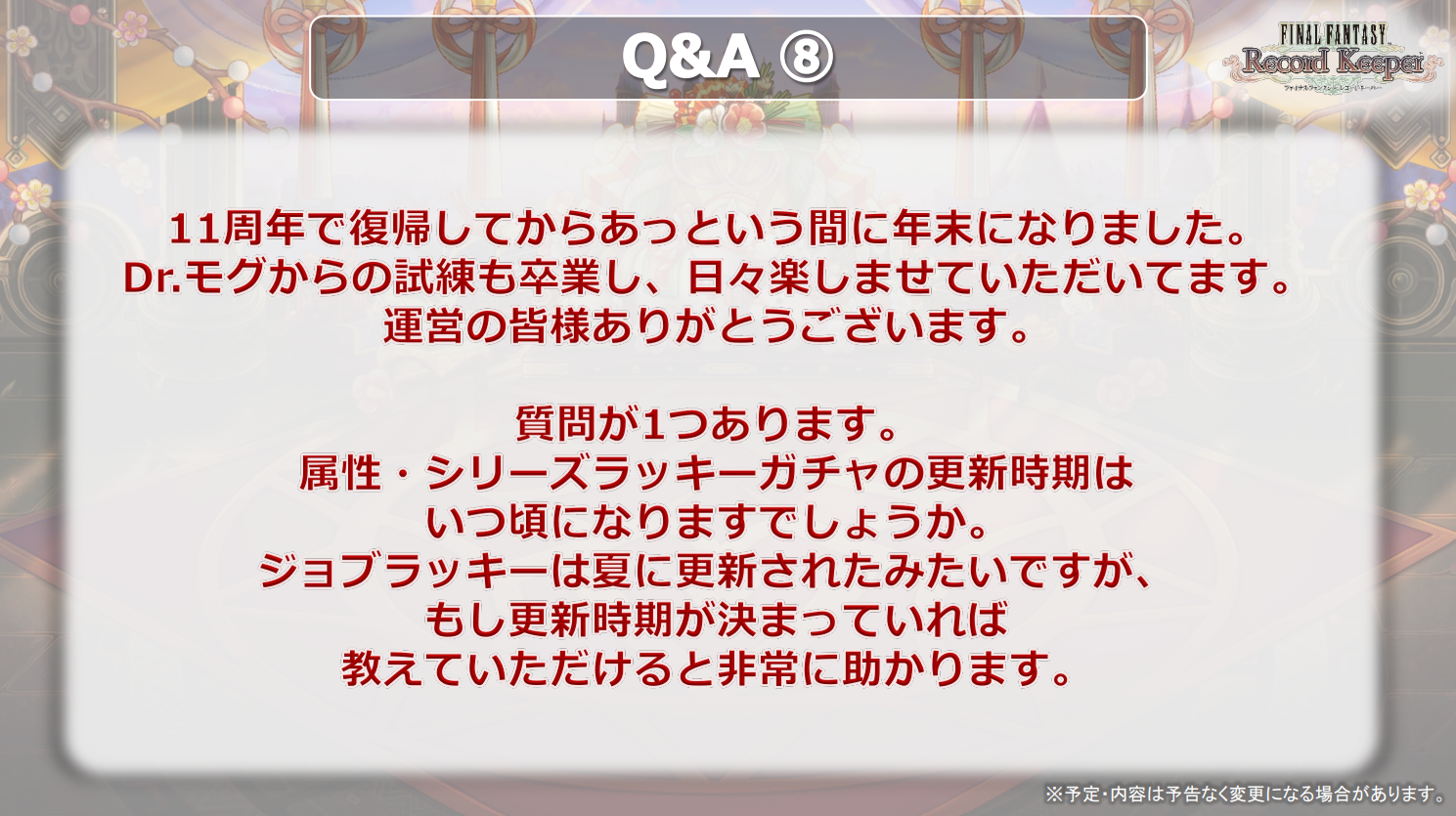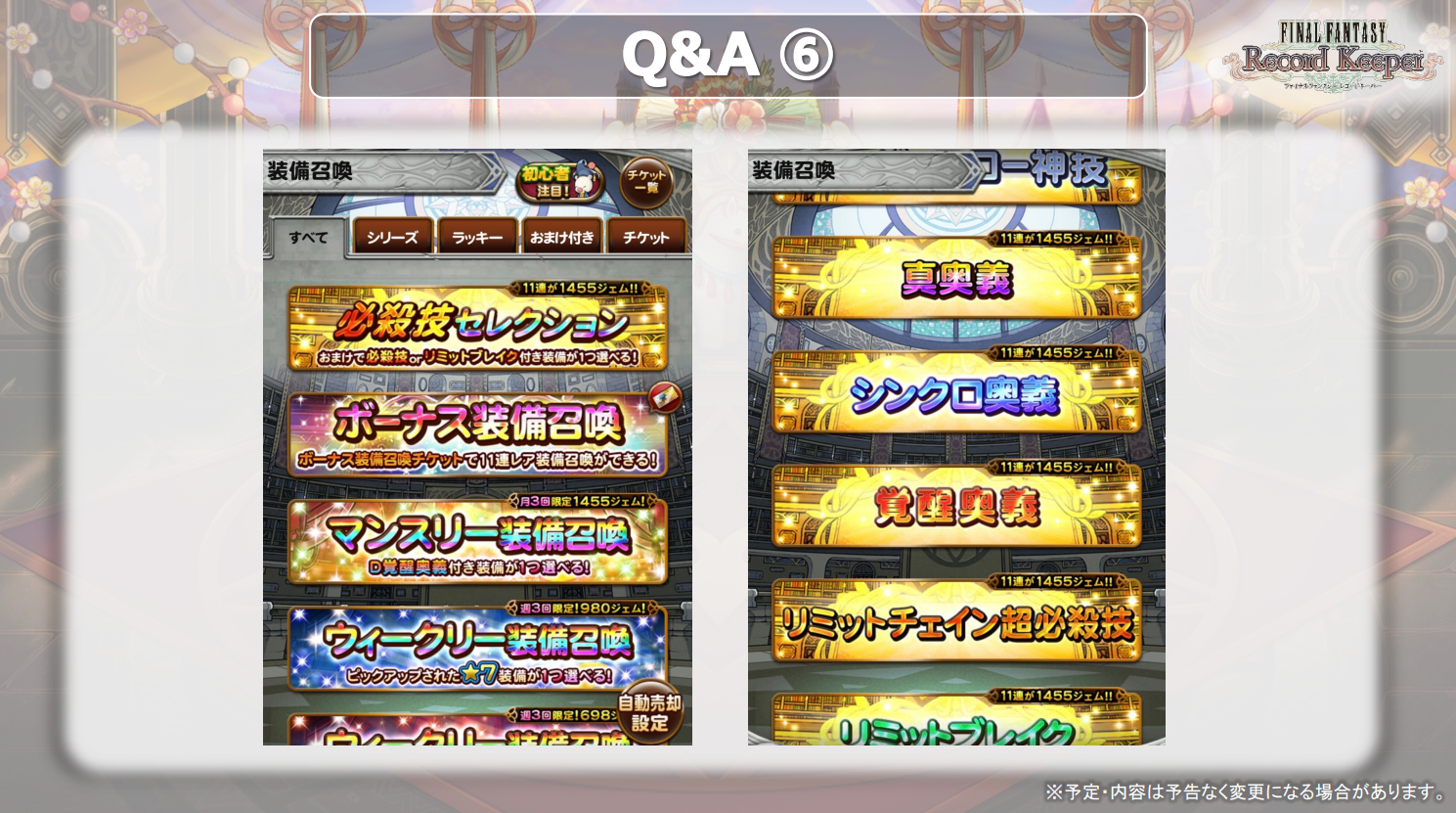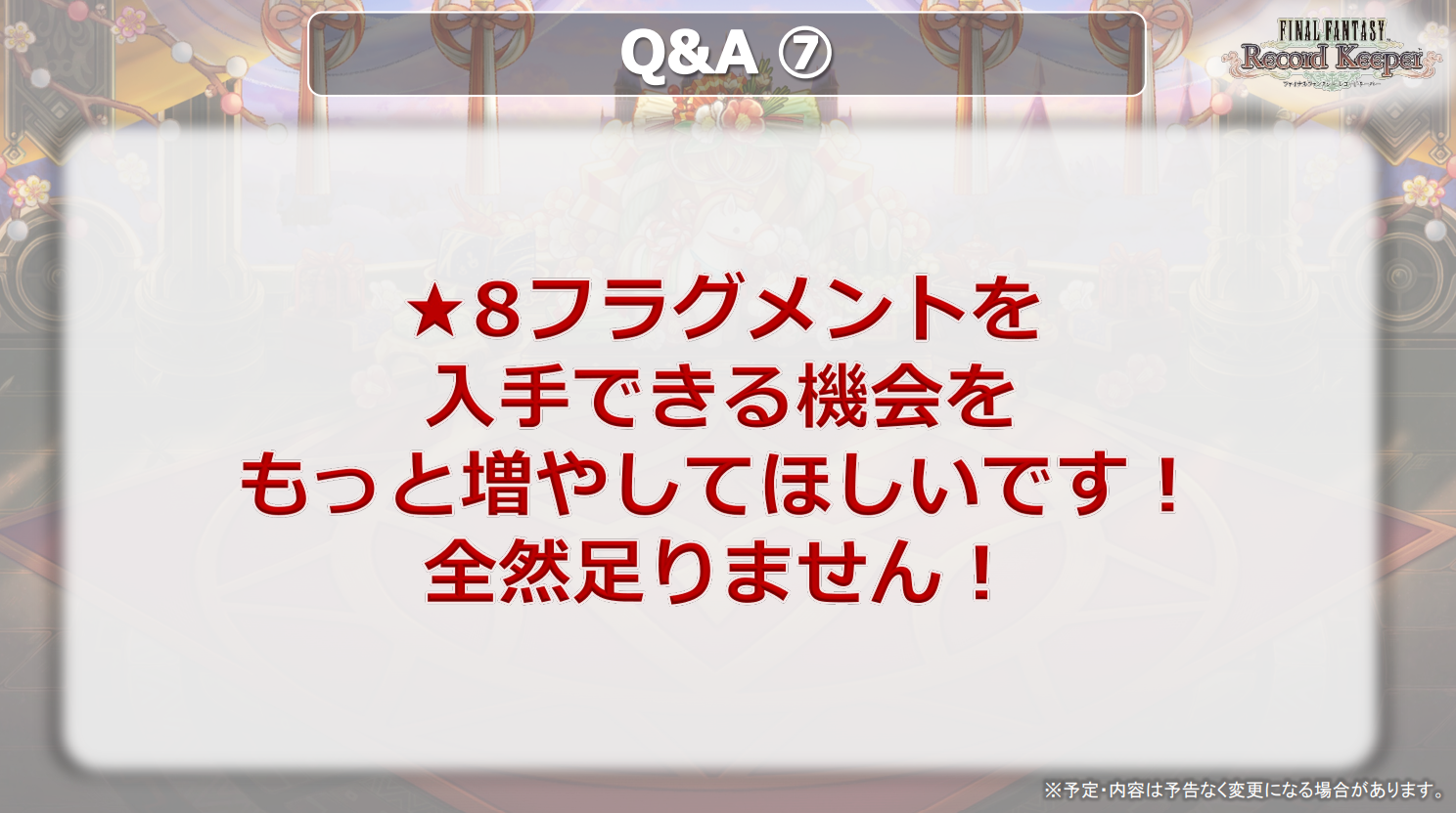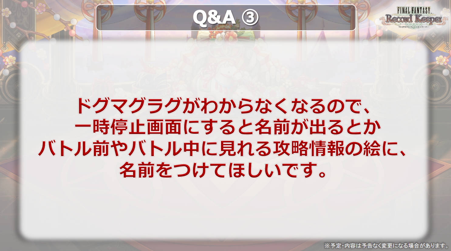 いつも「FINAL FANTASY Record Keeper」をプレイしていただき、ありがとうございます。