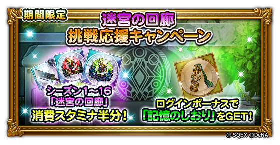 シーズン1〜16の「迷宮の回廊」の消費スタミナが期間限定で半分になります。
