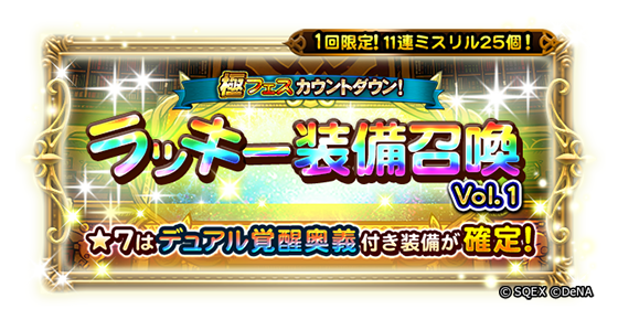 ▼12月23日(火)より、「極フェスカウントダウン!ラッキー装備召喚」が開催予定です。