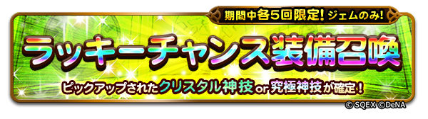 第3弾は「クリスタル神技」となっており、ピックアップされた「クリスタル神技」付き装備を1個確定で獲得することができます。